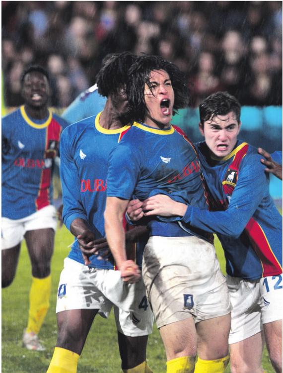 The Hounds exuberantly celebrate after their win. Photo courtesy of Apple