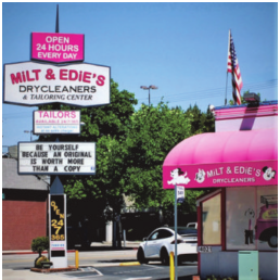 Besides customers checking on their orders, the most frequent question the maitre‘d at Milt & Edie’s Drycleaners & Tailoring Center getsis, “Howlateare youopen?” “We’realways amused by this sinceall our signageand all our advertising highlight that we’re open 24 hoursaday,seven days aweek,365 days a year,” say ownersBethand Michael Shader.