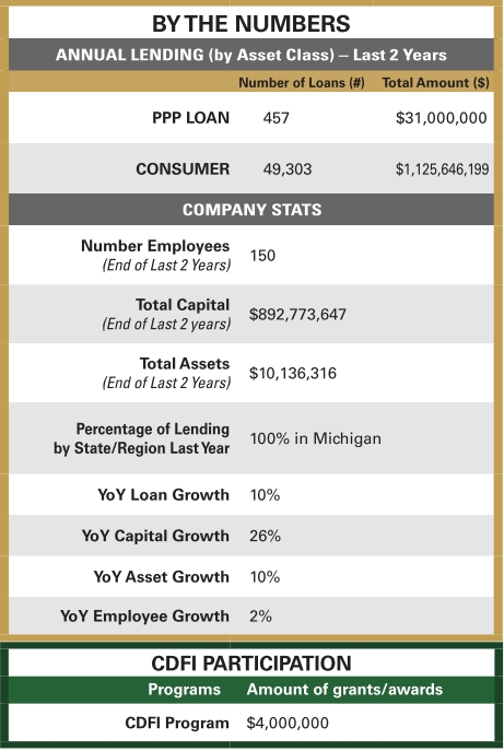 FCU is a state chartered credit union that covers all of Michigan including CDFI census tracts in Michigan.