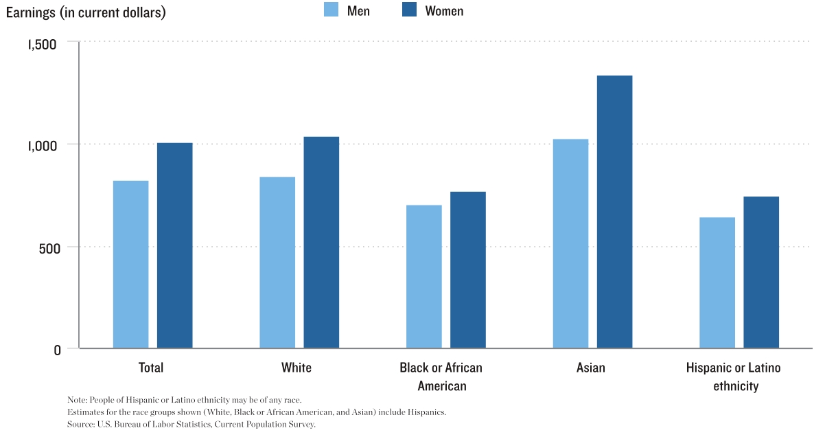 MEDIAN USUAL WEEKLY EARNINGS OF WOMEN AND MEN WHO ARE FULL-TIME WAGE AND SALARY WORKERS, BY RACE AND HISPANIC OR LATINO ETHNICITY, 2019 ANNUAL AVERAGES