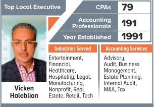 The largest local firm is independent Haskell & White LLP. The Irvine-based firm has 42 CPAs in its local office and a total local staff of 84 employees. The firm has a second office located in San Diego.