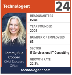 LA Times Studios presents the 25 fastest growing private companies headquartered in Orange County. Firms are ranked by two-year revenue growth from 2022-2024. Revenue figures were submitted along with verification documents. To qualify, firms must have had a minimum of $100,000 in revenue in 2022 and greater than $3 million in revenue in 2024. Companies must be for-profit, privately held and cannot be a division or subsidiary.