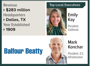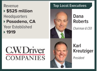Swinerton Builders, which operates local offices in Downtown Los Angeles and Santa Ana, leads the list with $1.3 billion in Southern California revenue last year. Tutor Perini Corp. ranks second on the list due to ongoing construction of major infrastructure projects.