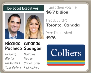 Here are the 30 largest commercial real estate brokerage firms ranked by Southern California transaction volume for 2024, presented by Business by LA Times Studios. Transaction volume includes both leases and sales for Los Angeles, Orange, Riverside, San Bernardino and Ventura counties. Large firms typically handle sales and lease transactions across all property types, and some have brokers who specialize in niches like cold storage and senior housing.