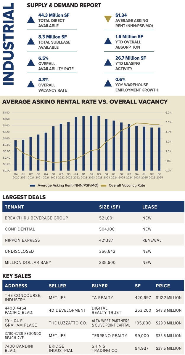 On the industrial side, vacancies have climbed to 4.8%, but availability, which includes space being marketed for lease even if not yet vacated, fell for the first time in nearly four years to 6.5%. This drop may indicate a shift in momentum for the industrial market, which peaked in activity post-COVID.