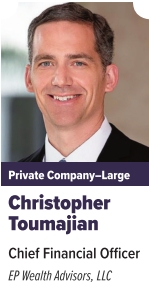 Christopher Toumajian, CFO of EP Wealth Advisors, oversees capital planning, financial reporting, human resources, real estate and M&A integration. Under his leadership, the firm has grown to nearly billion in Assets Under Management (AUM). As part of the executive committee, he has been instrumental in creating and implementing strategic roadmaps, policies and corporate governance. Over the past two years, Toumajian has driven inorganic growth through II partnerships. Before ER he served as CFO in the visual media marketing space and held key roles at Euronet Worldwide. Outside of work, he is a board member for Lady Rams Aquatics and mentors in the Corporate Mentoring Program at California State University, Long Beach.