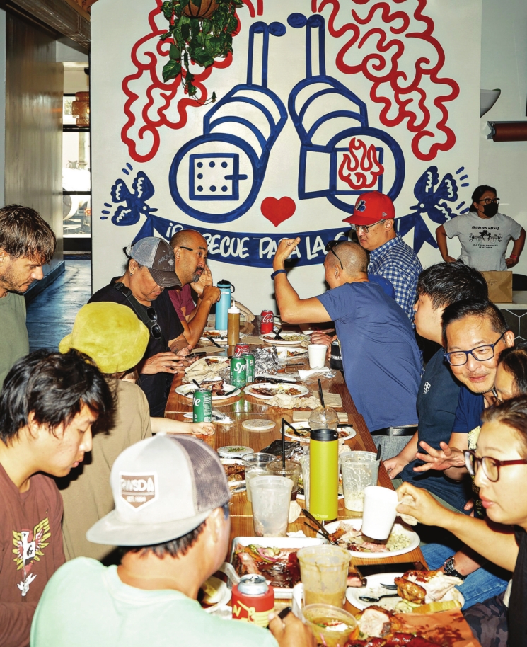 A large group digs in at Moo's Craft Barbecue. Is this the future of barbecue in Los Angeles?