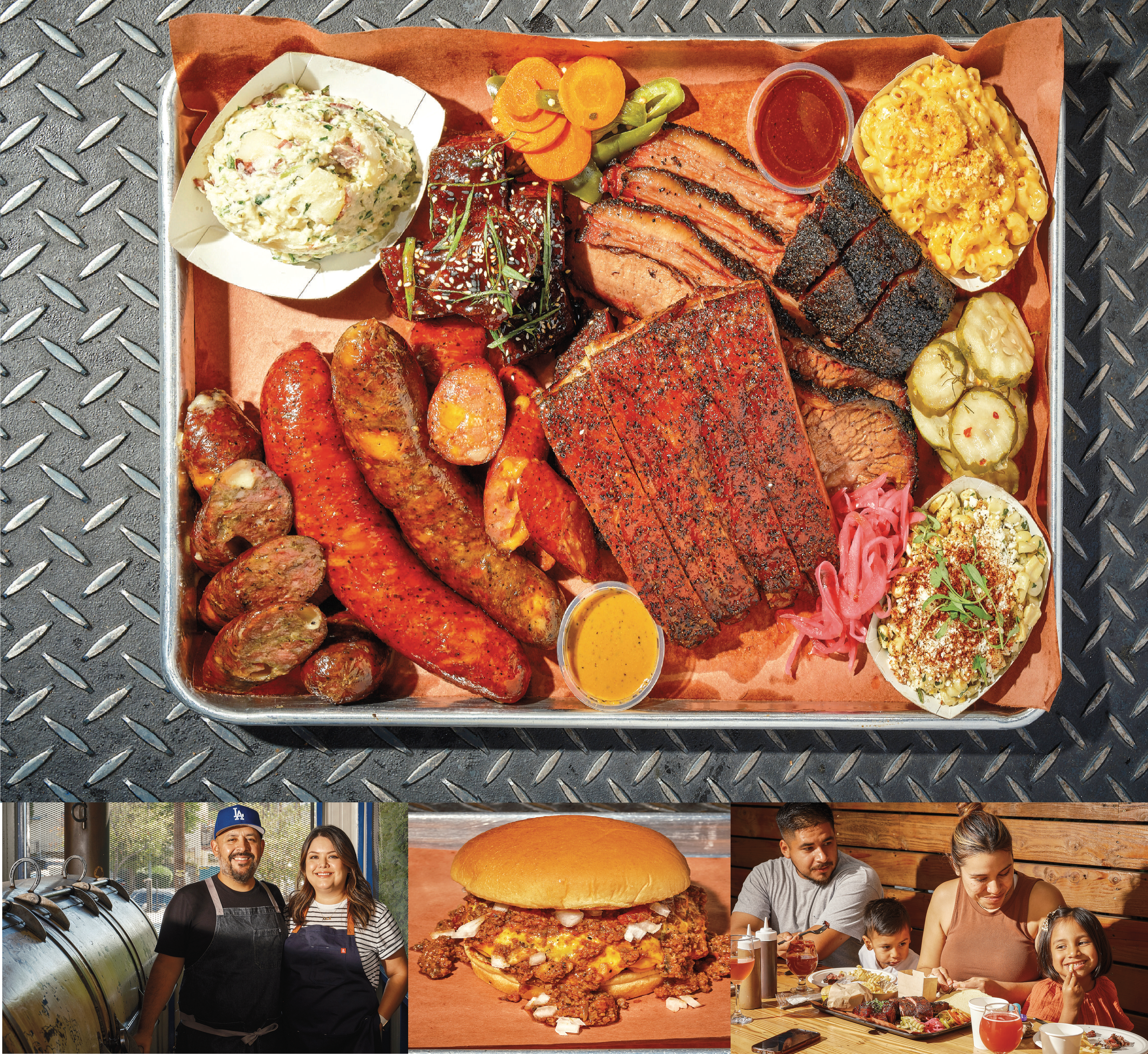 Miranda. “TEXAS STYLE BARBECUE,” read the window signs by the entrance to Andrew and Michelle Muñoz’s Lincoln Heights restaurant. Those three words only tell the beginning of the story. Forays into barbecue during business trips to Dallas over the last decade sparked Andrew’s interest in smoking meats. In his East Los Angeles backyard, he taught himself to emulate the slowly blackened brisket, caked in coarse pepper and salt, that epitomizes Central Texas barbecue — a once-obscure art that is a global obsession in the new millennium. In 2017 he grew his hobby into an underground pop-up. Matched with Michelle’s sides (creamy, punchy esquites; beans seasoned with stray bits of brisket) and the sausages she perfected using flavor boosts like roasted poblanos and queso Oaxaca, Moo’s Craft Barbecue made a commotion. Their restaurant, with a bar that focuses on local craft beers, opened last year. The line from the ordering counter usually stretches through the dining room and out the door. So yes, Andrew rightly acknowledges the Lone Star roots of his craftsmanship. He renders brisket nearly to pudding; the meat on his pork ribs, with their barky crust, nicely tugs back a little. But their efforts are not solely about homage. They’ll glaze pork belly burnt ends with gochujang as a special, and the tres leches strawberry bread pudding served on the weekends sells out fast. The thick, campfire-scented burgers have their own cult. On the shoulders of Mexican and Indigenous pit-cooking traditions and the Black barbecuers who arrived in Southern California as part of the Great Migration, the Muñozes are setting the tone for a new school of Los Angeles barbecue. • 2118 N. Broadway, Los Angeles, (323) 686-4133, mooscraftbarbecue.com See also