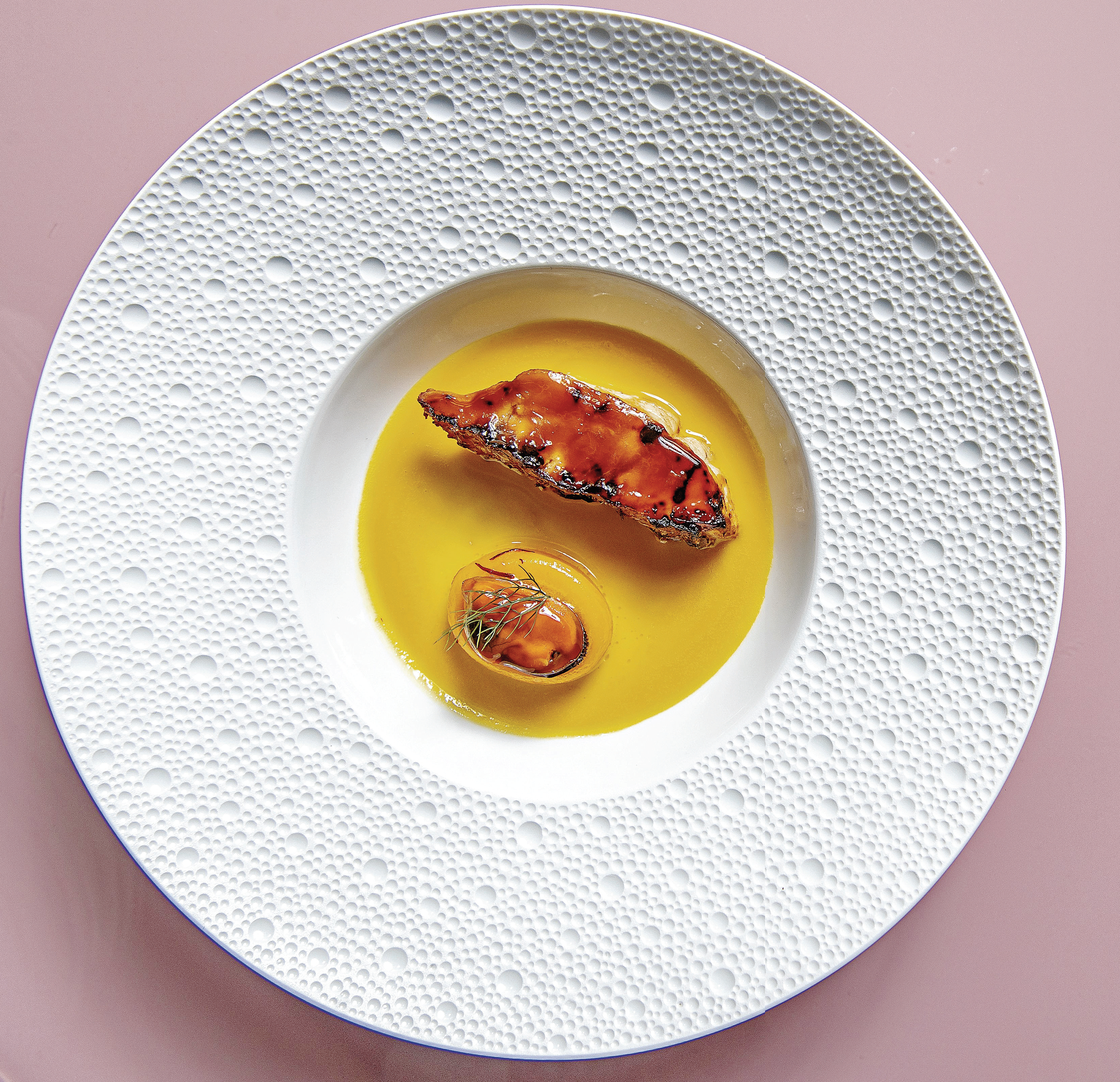PROVIDENCE IS A local and national benchmark of white-tablecloth extravagance, rightly famed for Michael Cimarusti’s luxury coddling of seafood. His cooking is less about fireworks and drama and more about technique in pursuit of clarity: Even if frothy corn sauce and fermented radish surround king crab, or truffles and pancetta scent a Hokkaido scallop, it’s the taste of the ocean that long stays in the memory. If you desire, white truffles will rain down over risotto or golden scrambled eggs; cocktails can be made tableside; and a sommelier might arrange a parade of wine pairings that costs nearly as much as the tasting menu, which is $295 per person. Go ahead and splurge on the optional uni egg gilded with Champagne beurre blanc. Fanciness without human connection feels vacant, and the warm, alert individuality that Providence’s service team brings to the experience has contributed as much to the restaurant’s longevity as the brilliant food. I recently brought a 30-something Times colleague (who doesn’t work on the Food team) for his first dinner to Providence, and at the end of the evening he said, “If I make it to 80 I’m still going to be thinking about this meal.” I sat with his words for a minute, and then I thought: Same. • 5955 Melrose Ave., Los Angeles, (323) 460-4170, providencela.com
