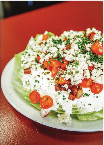 Found Oyster’s wedge salad is loaded with Stilton, bacon and cherry tomatoes.
