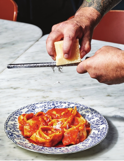 Freshly grated Parmigiano finishes a plate of tortelloni at Rossoblu. See also