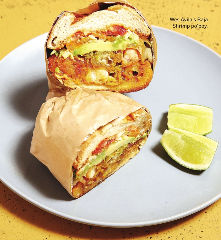 WES AVILA never stays still. When he’s not overseeing the menu at Yucatánthemed Ka’teen at the Tommie Hollywood hotel, he’s devising the day’s out-of-leftfield specials at Angry Egret Dinette, his project in Chinatown’s Mandarin Plaza. Maybe one afternoon will bring a teetering burger that calls forth backyard barbecues; the next day he’ll pile a tostada with surf clam, halibut and uni and spackle them with salsa negra and salsa macha so the seafood is downright gritty with texture and spice. Waffles with mascarpone cream and breakfast burritos like Hey Porky’s (roasted and shredded pork shoulder with scrambled eggs, black beans, queso Oaxaca and salsa verde) are mainstays for breakfast, which is my favorite meal at Angry Egret Dinette. The shaded courtyard setting has been a draw since the darkest days of 2020; now there’s a cozy indoor dining area with floor-to-ceiling windows too.
