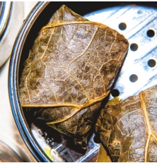 An array of dim sum, above, and sticky rice in lotus leaves, top, at Elite.