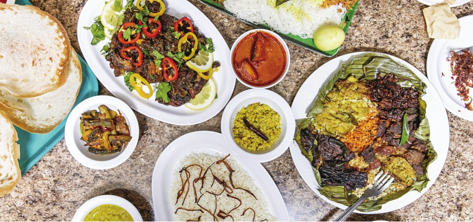 CHEF NIZA HASHIM and her husband, Lalith Rodrigo, are natives of Colombo, Sri Lanka’s portcity capital. The name of their Tarzana restaurant translates from the Sinhalese language as “our store.” Among several restaurants in the San Fernando Valley that serve Sri Lankan food — on the whole a remarkable and complex cuisine that’s under-represented in Los Angeles — their menu is the most comprehensive and the most consistently delicious. For dine-in or takeout, call ahead an hour or two to request lamprais, pronounced lump-rice, a feast of chicken or beef curry with vegetables (or ask for it entirely vegetarian) and other sides warmed in a banana leaf. The steam when you unwrap this parcel carries the scents of sweet spice, coconut palms and floral rice. Idiyappam, or string hoppers, are made of thin rice-flour noodles steamed into pearly nests and served with kiri hodi, a golden spiced coconutmilk gravy; a salad of finely chopped greens; sambol; and chutney. You have a choice of curry: I suggest the fish. Its secret ingredient is a dried fruit that goes by many names: goraka, kudampuli, Malabar tamarind. It imparts a sour, smoky tanginess to seafood for which the palate has no other reference.