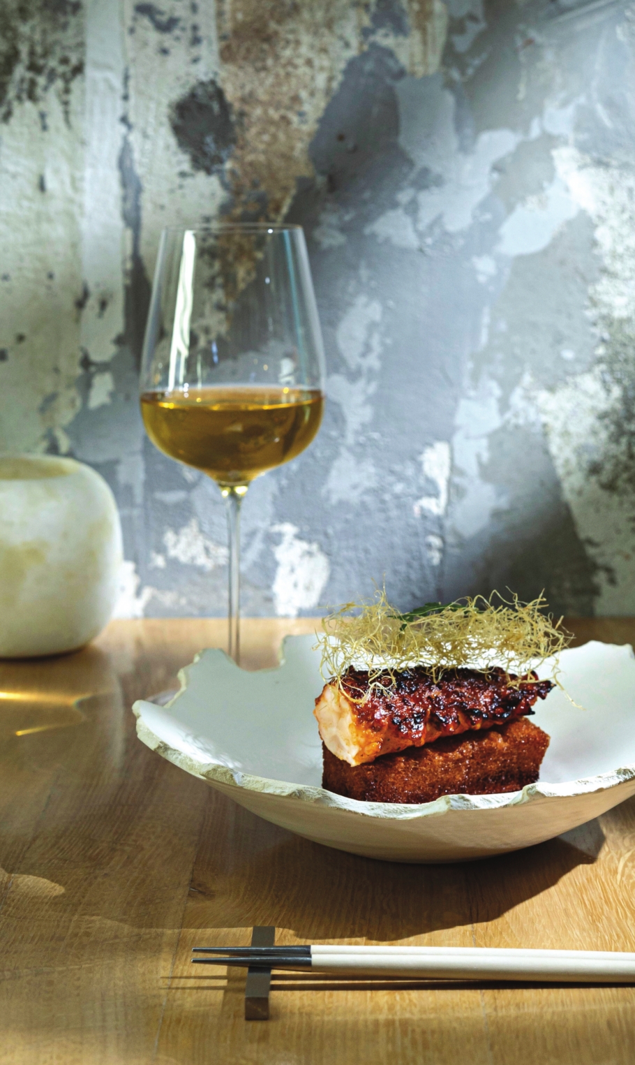 Hot pot. Stir-fried clams with basil. Newport Seafood’s famous peppery lobster. The dishes Jon Yao grew up loving in the San Gabriel Valley are the seeds from which his one-of-a-kind cuisine comes to light. A conception like smoky grilled lobster set over a buttery riff on shrimp toast, intensified with pepper relish and a fathomless black bean sauce, won’t visually resemble its source of inspiration. Yet the flavors contain not only Yao’s culinary DNA but also a collective memory of what it means to dine in Los Angeles.