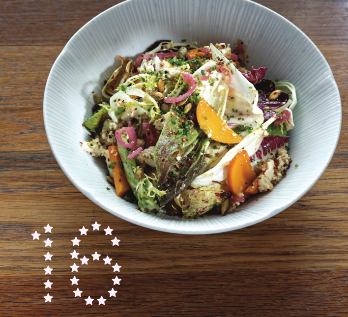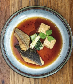 A fall salad, top, is filled with farmers market produce; gindara nitsuke (soy-simmered cod), above. Courtney Kaplan and Charles Namba’s 32-seat Echo Park gem follows the izakaya playbook: two dozen or so raw, steamed, fried and grilled dishes informed by Namba’s L.A.-native penchant for combing the farmers markets, and matched with Kaplan’s mastery of sake. That’s the tidy summary of Tsubaki. It’s far more difficult to convey the drive and heart that animates the restaurant until you’re shoulder to shoulder with other diners in its tiny space. One server lifts the lid off a donabe full of clams, and the steam blasts scents of seaweed and cultured butter. Another parses the fine points of melon, mineral and umami flavors present in by-the-glass sake options. You split a potato croquette in half with chopsticks and find the filling of roasted corn, cotija, crema and lime evokes the flavors of elotes. Note how the chicken oysters on a yakitori skewer displays dots of yuzu kosho as distinct as the eyespots on peacock feathers. Tsubaki is my back-pocket restaurant for a dinner that impresses out-of-towners every time, including vegetarians. While Namba and Kaplan have been focused on opening their new bistro Camélia downtown, chef de cuisine Klementine Song has seamlessly steered the kitchen of their flagship. A meal here is as magnificent as ever. — B.A. 1356 ALLISON AVE., LOS ANGELES, (213) 900-4900 l TSUBAKILA.COM See also