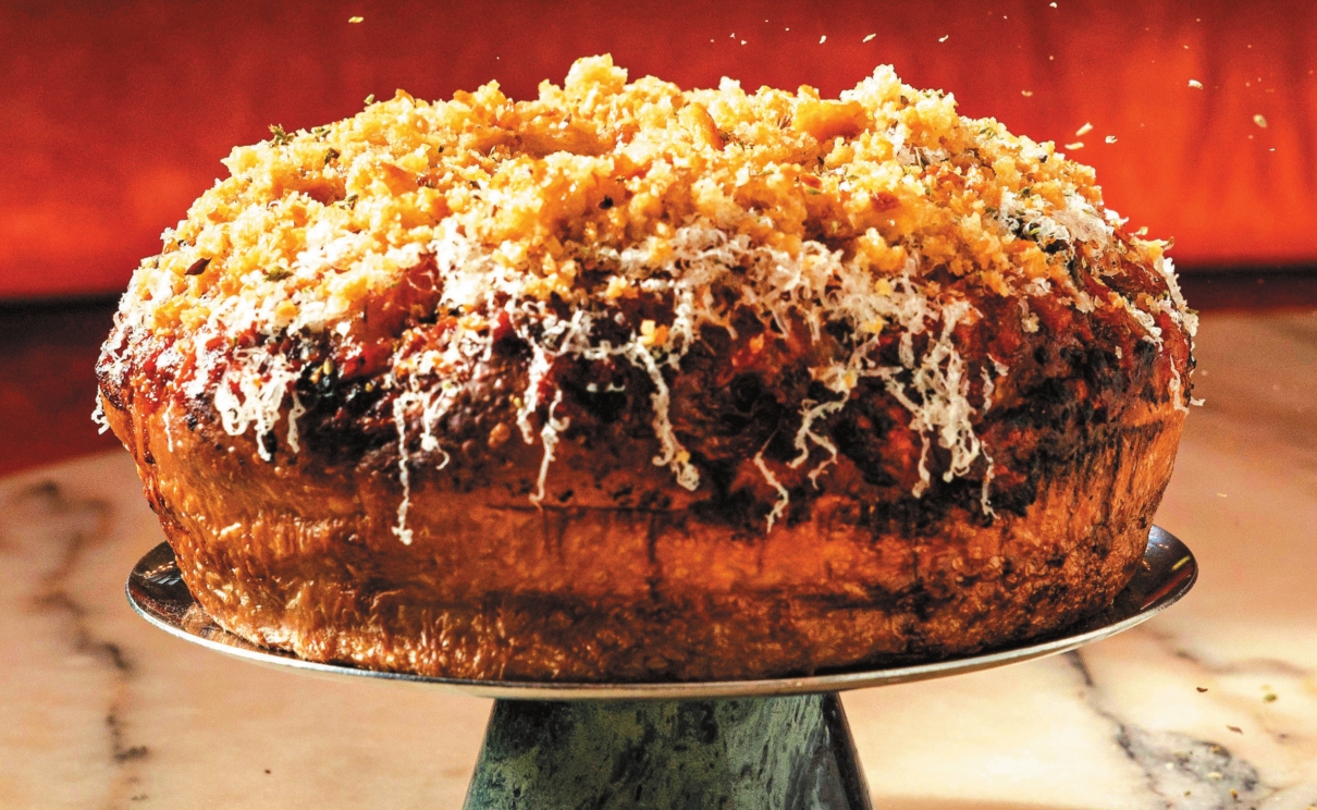 Sfincione palermitano sprinkled with wild Italian oregano. Evan Funke’s trilevel Beverly Hills restaurant is a temple of pasta, in very much the same vein as his Felix and Mother Wolf. But the eponymous restaurant may be the most theatrical of the three, with a sprawling open kitchen and pasta laboratorio on one level, a second dining room and a rooftop bar. More than a year in, reservations are still notoriously difficult to procure and the clientele no less stylish or connected. I almost take the pastas for granted, knowing the tomato and chile in the arrabbiata will reach a luscious harmony between the strands of al dente spaghetti. I’m always wowed by the sfincione palermitano, the round of dough painted with a jammy tomato and onion sauce, then dressed with a racy cheese, wild oregano and breadcrumbs. It starts off crisp, then fades into an airy pillow. And the prime rib-eye cap, well crusted and served alongside crispy potatoes, may be the most satisfying meat-and-potatoes dish in the city. Dinner is the antithesis of light, but save room for one of Shannon Swindle’s desserts. The seasonal crostata is always worth it. —J.H. 9388 S. SANTA MONICA BLVD., BEVERLY HILLS, (424) 279-9796 l FUNKELA.COM
