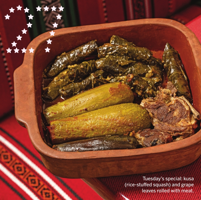 Tuesday’s special: kusa (rice-stuffed squash) and grape leaves rolled with meat. Aref Shatarah wheels out a cart full of dishes that his wife, Magida Shatarah, just prepared. Among them is kufta with tahini. Are those a few straggling fries sticking out of the appealingly murky sauce? Yes, and when I slide in a spoon, I lift out richly seasoned ground beef that’s been baked in the bottom of the pan. Lemon blazes through the tahini. Every dish reveals similar exacting definition. Since 2021, Al Baraka has distinguished itself among the culinary riches of Anaheim’s Little Arabia with a repertoire of Palestinian dishes more commonly seen in home kitchens than at restaurants. Whatever else you order — tabbouleh that tastes as bright as it looks, molokhia (a soothing soup of pureed jute mallow), kubba laban (beef and bulgur croquettes in satiny yogurt sauce) — scan the list of daily specials. Saturdays, for example, mean mshakhan: roast chicken, browned from spices and heat, piled on flatbread with sumac-stained onions. This is an autumn feast to taste the year’s first local pressings from the land’s ancient olive groves. Magida’s skillful cooking safeguards such traditions. — B.A. 413 S. BROOKHURST ST., ANAHEIM, (657) 220-5296 l INSTAGRAM.COM/ALBARAKARESTAURAN See also