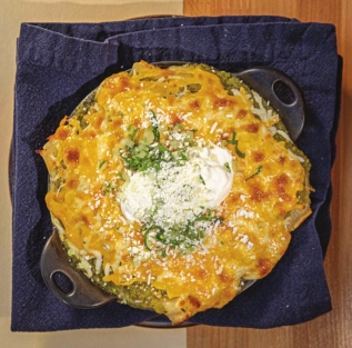 Josef Centeno named his 12-year-old downtown Tex-Mex bastion in honor of his great-grandmother Gabina Cervantes Martinez. She made her family Tejano dishes alive with fresh vegetables from the farmers market or her garden — an ethos that resonates through the decades in Centeno’s adaptive, borderless Los Angeles kitchen. Peaches are sauteed with hazelnuts and goat cheese in the summer; coconut butter and pomegranate molasses gloss sweet potatoes come wintertime. His mom’s weekday staple recipe, green chicken enchiladas blasted with tomatillo salsa and bubbling with cheddar and Monterey Jack cheeses, has become one of the city’s enduring comfort foods. They soothe even more alongside guacamole, queso (including a gold-standard vegan version) and a limey margarita. The genius of Bar Amá, and Centeno, is the sureness behind his culinary unpredictability. An inspired lobster ravioli in green mole with the unorthodox nip of tarragon might appear on the menu, as will bäcos, his longtime signature flatbreads, perhaps folded around fried shrimp or twangy chicken escabeche with Thai-chile aioli. His whimsies, backed by commanding skills, keep us guessing and returning. — B.A. 118 4TH ST., LOS ANGELES, (213) 687-8002 l BAR-AMA.COM  The green chicken enchilada is based on a recipe from chef Josef Centeno’s mother that was a weekday staple growing up. See also