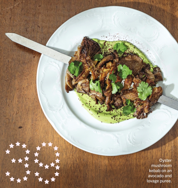 Oyster mushroom kebab on an avocado and lovage puree. When you go to Langer’s, you order pastrami. Howlin’ Ray’s? The fried chicken sandwich. Ignoring a specific dish at a certain restaurant can be blasphemous. Here is the dilemma with Bavel, Genevieve Gergis and Ori Menashe’s Levant-spanning Arts District restaurant. To experience it best, you need as large a group as you can manage. I wouldn’t dream of starting a meal without swiping a hot puffy pita through silky hummus blasted with spicy duck paste. The natural next course is oyster mushroom kebabs tart with lemon and sumac. The malawach bread, with its abundant flaky layers and side of strawberry zhoug, is nonnegotiable. I crave the breaded fried quail painted with chile oil more than I do some of this town’s best fried chicken. I still see stars when I take that first bite of lamb neck shawarma. Whatever seasonal fruit Gergis has turned into a tart, cobbler or ice cream is the one to order. Bavel, the name on everyone’s lips at launch, is still a tough weekend reservation seven years later. — J.H. 500 MATEO ST., LOS ANGELES, (213) 232-4966 l BAVELDTLA.COM See also