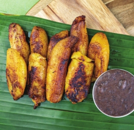 Ruth Sandoval started Delmy’s Pupusas in 2007, named for her mother, who immigrated to the U.S. in the 1980s during the Salvadoran civil war. She serves variations on El Salvador’s national dish, popping up weekly at farmers markets including Silver Lake, Atwater Village, Echo Park, Torrance and Hollywood. In a city like Los Angeles, there’s a pupusa for every persuasion. I’m partial to Sandoval’s harina de maiz, which is almost cake-like in the middle. The pupusas bake on the hot griddle until they’re splotchy with crisp brown spots and the insides are ready to burst. A filling of ground chicharrón takes on the consistency of creamy grits. There’s even a blue corn masa plant-based pupusa stuffed with vegetables from the surrounding farmers markets. My go-to order at any pupuseria, including Delmy’s, is the cheese and loroco, which features the bitter flower buds that are native to Central America. A splash of red salsa and a scoop of zesty curtido complete the pupusa trifecta of cheese, acid and crunch. And after pupusas, there are sweet, fried plantains with a black bean puree for dipping. — J.H. INSTAGRAM.COM/DELMYSPUPUSAS  Queso and loroco pupusas, top, and fried plantains served with a black bean puree for dipping. See also