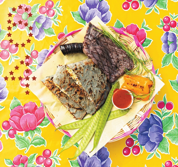 Poncho’s tlayuda with three meats — chorizo inside, tasajo and moronga. It is Friday night, time to head to South L.A. for the weekly pop-up serving one of our city’s defining dishes. Among billows of mesquite, under a tent in a shrubbery-filled yard, Alfonso “Poncho” Martínez will be grilling and folding tlayudas in the style he grew up loving in Oaxaca’s Central Valley. He begins by swabbing his masa canvas (imported from his home state) with asiento before spreading over frijoles refritos, shredded cabbage and cheese yanked into short strings. Choose among three meats: chorizo; tasajo, a thin cut of flank steak salt-cured overnight before grilling; and moronga, a miraculously light, herb-laced blood sausage from a family recipe of Martinez’s wife, Odilia Romero. (She co-founded Comunidades Indigenas en Liderazgo, or CIELO, which hosts the popup.) I like all three combined. Soft and crackling, fragrant and dense, this tactile masterwork coaxes all your senses into play. —B.A. 4318 S. MAIN ST., LOS ANGELES, (213) 399-4704 l PONCHOSTLAYUDAS.COM See also