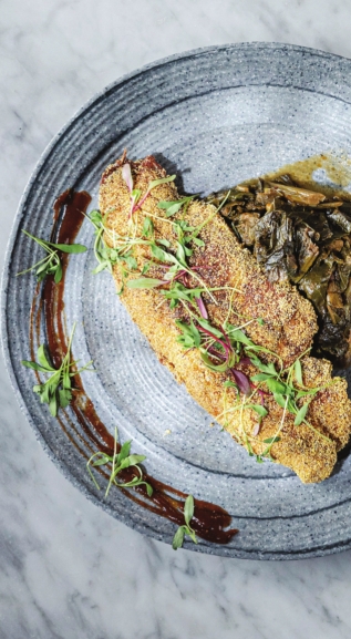 Oxtail tacos, left, with kale and red onion drizzled with a whiskey reduction; catfish with braised greens, below. When I think of the dishes integral to this city’s taco identity, Alisa Reynolds’ oxtail tacos at her California soul restaurant are some of the first that come to mind. The velvety strands of oxtail are braised for six hours until the meat is slack, succulent and nearly spreadable. She places a heap in a warm corn tortilla with roasted tomatoes and showers the taco with wisps of curly kale and slivers of raw red onion. The meat juices run wild and mix with a drizzle of whiskey reduction, the two creating a heady dressing for the taco, and anything else on your table. Regardless of how you feel about meat pressed into a loaf (lifelong stan here), her turkey meatloaf burger is ingenious. She coats the slab in panko, then fries it until a crisp crust forms. Nestled between two slices of Texas toast with fresh shaved apple, it’s one of Los Angeles’ great sandwiches. Reynolds’ sister Theresa Fountain, with whom she opened the restaurant in 2013, is responsible for all the desserts. I typically find myself with little room for something sweet after lunch, but I never leave without a slice of her vegan sweet potato pound cake. Reynolds has called My 2 Cents a gift to the city. I couldn’t agree more. — J.H. 5583 W. PICO BLVD., LOS ANGELES, (323) 879-9881 l MY2CENTSLA.COM See also