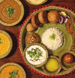 The nearly 100-item menu at Bhookhe, as with many other Indian restaurants along Pioneer Boulevard in Artesia, veers through some of the subcontinent’s most popular categories: pan-regional snacks; curries, including a smattering of North Indian classics like palak paneer; and Indian Chinese favorites such as tangy-sweet gobi Manchurian. Zero in on the vegetarian maharaja thali, though, as an immersion into the flavors of Rajasthan, where chef Pooja Dwivedi and her co-owner husband, Anshul, were raised. Where to start, among the tray’s nearly two dozen components? Point your spoon toward gatte ki sabji, soft squares of chickpea dumplings submerged in a yogurt sauce so finely spiced you’ll drink it like a lassi. Then graze through half a dozen small breads made from different flours (cornmeal and pearl millet among them), ideal for dunking in warm ghee or soupy dal. Garlicky chutney, tense with kachri, a tiny, wild melon, and green chile pickle ignite forkfuls of rice. The kitchen frequently changes up dishes on the maharaja thali, particularly seasonal vegetables, to pique the interest of return customers. There are a lot of us. — B.A. 18633 PIONEER BLVD., ARTESIA, (562) 523-0589 l BHOOKHE.COM  The maharaja thali has many components, and the kitchen often changes them up, particularly the seasonal vegetables.