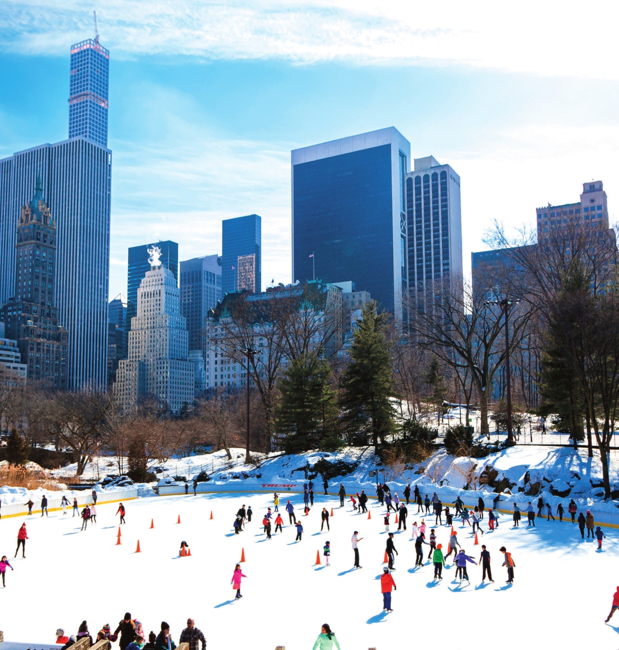 Located behind the New York Public Library, the Winter Village at Bryant Park features a European-style, open-air holiday market with dozens of art, craft and gift shops in glassenclosed kiosks. Tucked inside warm, translucent geodesic domes, the park’s temporary Curling Café offers food, drinks and an actual curling lane.
