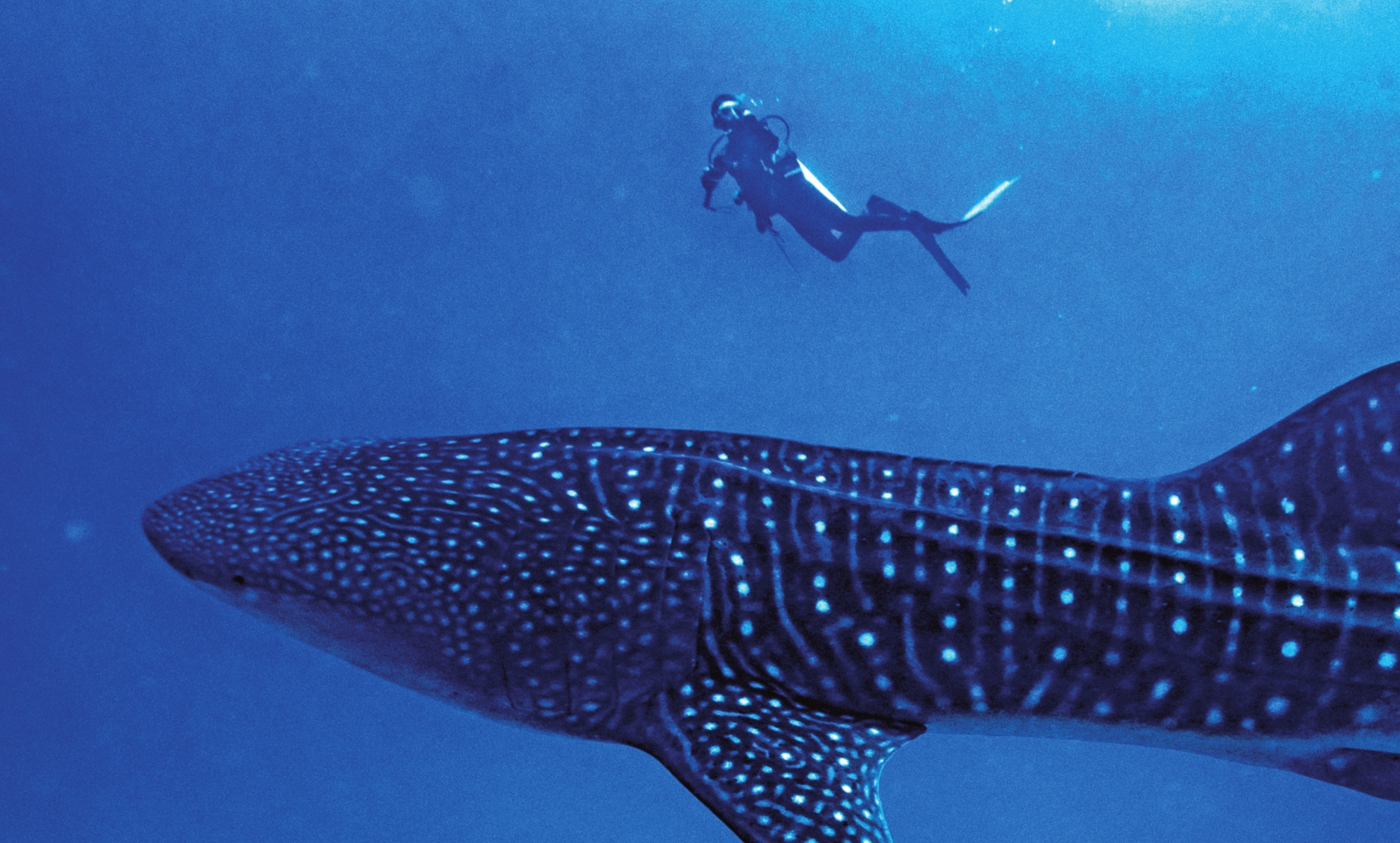 Americans will recognize the Maldives, at least by name – found literally on the other side of the globe, south of India – and made up of 1,192 islands in the Indian Ocean. This remote country is a favorite playground of whale sharks, especially in the South Ari Atoll.