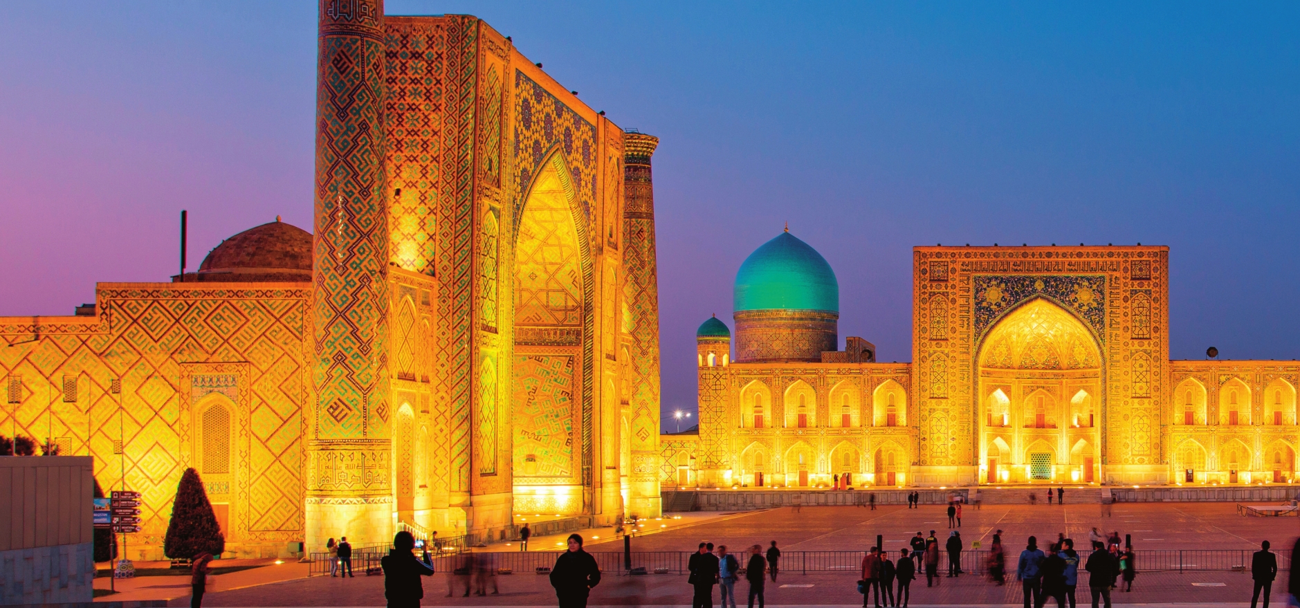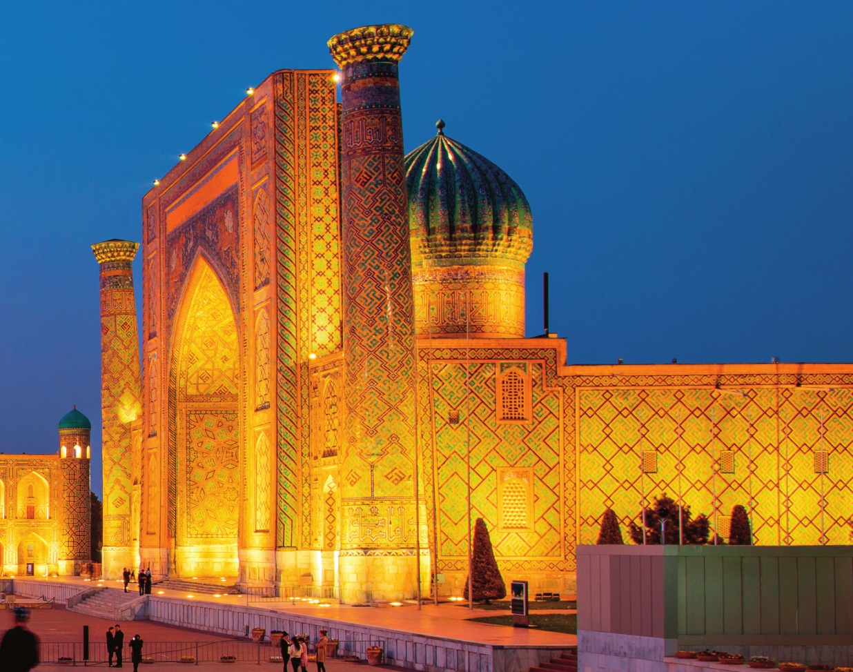 When it comes to blow-your-mind architecture, nothing in Central Asia compares with the Registan in Samarkand. Created between the 15th and 17th centuries, the square is flanked by three enormous Persian-style madrassas (Islamic schools) with turquoise domes and lofty minarets. Their facades are covered in intricate mosaics, not just the usual geometric and floral patterns but also ferocious tigers, leaping deer and giant faces that represent the sun.