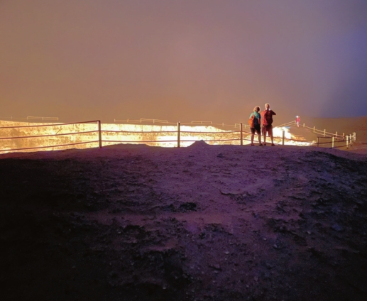With Ashgabat in the rearview mirror, we drove north in a convoy of 4x4s through the dunes of the Karakum Desert to perhaps the only industrial accident other than Chernobyl that’s evolved into a tourist attraction. The famed – or at least infamous – Darvaza Gas Crater is a giant flaming hole in the ground, created during Soviet times when a natural gas drilling rig collapsed into an expanding sinkhole.