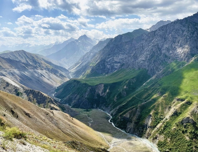 One of the routes through the highlands is Highway M34, a narrow, twisting roadway plagued by rockfalls, avalanches, landslides and other dangers. The first stretch was along the gorgeous Varzob River, its whitewater flanked by thick forest and flowered-filled alpine meadows. Then came a series of seemingly endless switchbacks that lifted us to the notorious Anzob Tunnel, a three-mile-long underground passage that Atlas Obscura calls “dark, damp, perilous” and known locally as the “Tunnel of Death.” The payoff on the other side is the view from 11,000-foot Anzob Pass, a panorama of jagged peaks still draped in waterfalls and snow in midsummer.