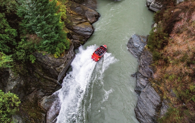 Via bus or rental car, you can continue to Queenstown and a final set of extreme adventures that could potentially include the fabled Kawarau Bridge bungee jump, tandem skydiving over Lake Wakatipu, flying high above a local canyon on the Nevis Canyon Swing or zipping up a raging river on the Māori-owned Shotover Jet boat.