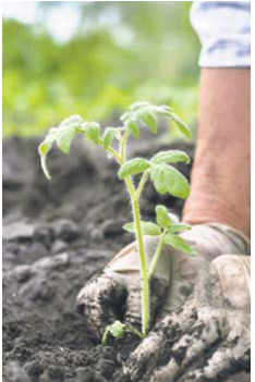 Soil preparation is easy: feed and amend in one step. Apply a 2- to 3-inch layer of organic compost or planting mix. This can be homemade or bought at the garden center. Next, apply (on top of the compost) an organic plant starter fertilizer at the recommended rate. Then, with a shovel, turn the soil, compost and fertilizer to a depth of 6 to 8 inches deep. Deeper is better for vegetable gardens.