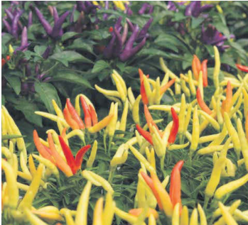 Ornamental peppers are having a moment, and it’s a great one. The small, upward facing peppers (yes, they’re edible) are intense red, bright orange, yellow, cream and purple. And many of them have beautifully contrasting foliage of black, purple or variegated white, purple and green.