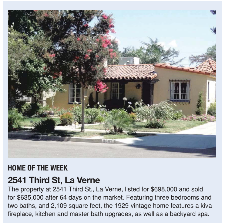 1075 N. Indian Hill Blvd. DATE: Oct. 10 PRICE: $1.13 million BUYER/SELLER: James A. Hitchcock/ Tina M. Clark BED/BATH/SQ. FT.: 5/3/3,344