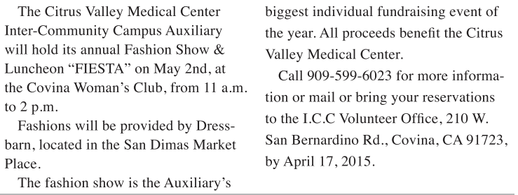 Citrus Valley Medical Auxiliary Fashion and Fiesta is May 2