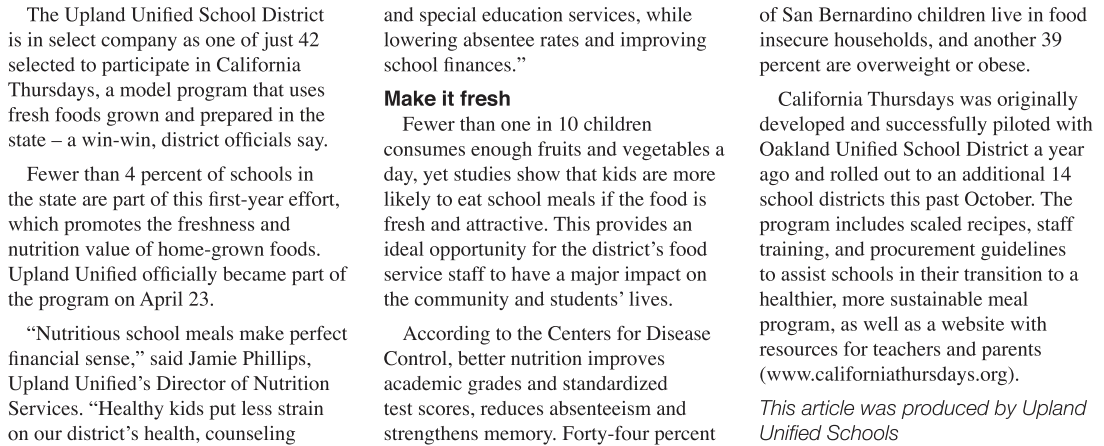 Upland Unified's word for Thursday is Fresh