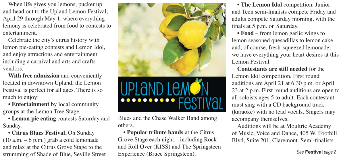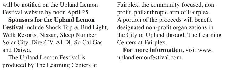 Upland Lemon Festival marks 20th year, April 29 - May 1