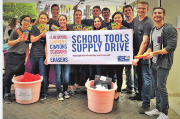 donated crayons, markers, colored pencils, backpacks, and other supplies