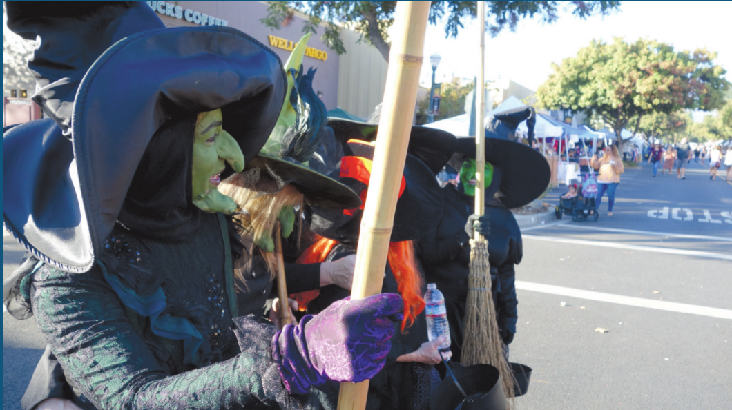 Scenes from the 36th Annual Village Venture Arts and Crafts Faire, Oct. 28 in the Claremont Village, presented by Claremont Chamber of Commerce. Some 20,000 visitors roamed Claremont Village streets and visited more than 400 booths featuring art, original crafts and apparel, dodged witches or relaxed at cafes. Hank’s Cadillac played the Claremont Depot, shown, while the Honey Buckets took the stage at Shelton Park. Steve O’Sullivan photos See also