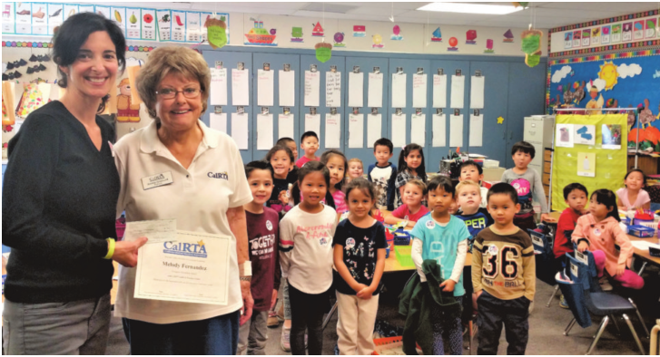 Members of the CA Retired Teachers Association Div. 13 marked “Retired Teachers Week” in November by inviting teachers in 10 local school districts to apply for up to $200 to fund a classroom project. This year CalRTA received 171 applications and 25 were funded. Among them, at Evergreen Elementary in Walnut Valley USD, Kindergarten teacher Melody Fernandez needed materials for the “Project Lead the Way” program. She is shown with CalRTA member Robbie Cendejas. Visit div13.calrta.org for more information.