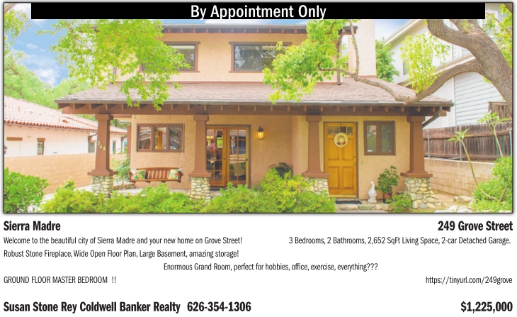 Susan StoneRey Coldwell Banker Realty 626-354-1306 $1,225,000