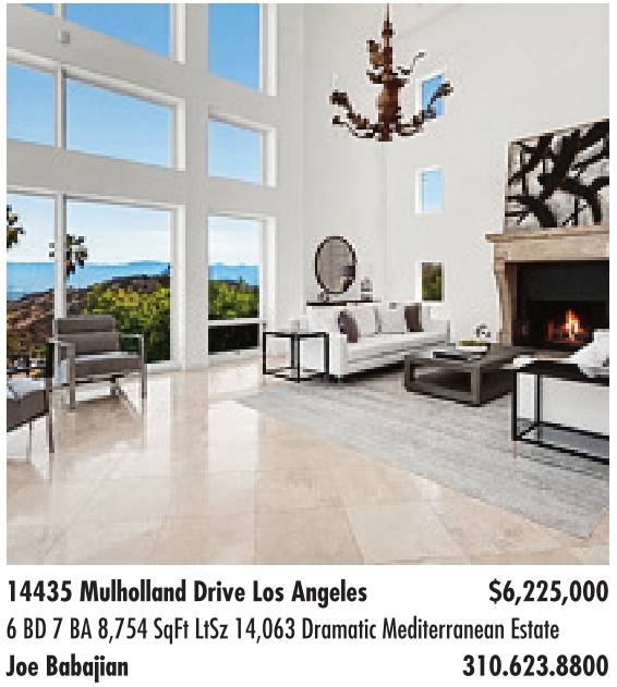 14435 Mulholland Drive Los Angeles $6,225,000 6 BD 7 BA 8,754 SqFt LtSz 14,063 Dramatic Mediterranean Estate Joe Babajian 310.623.8800