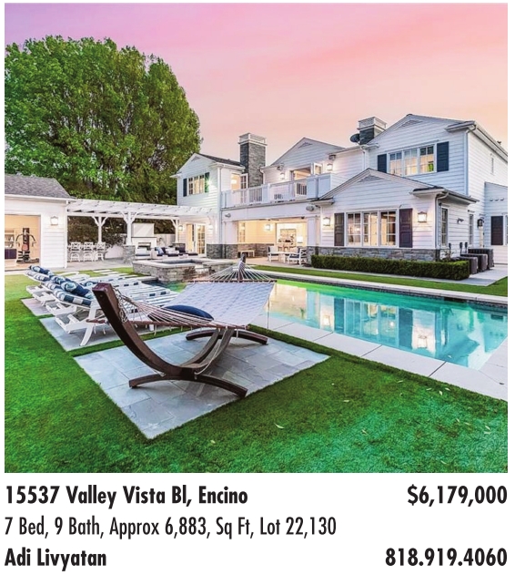 15537 Valley Vista Bl, Encino $6,179,000 7 Bed, 9 Bath, Approx 6,883, Sq Ft, Lot 22,130 Adi Livyatan 818.919.4060