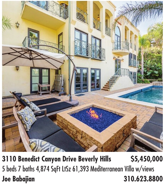 3110 Benedict Canyon Drive Beverly Hills $5,450,000 5 beds 7 baths 4,874 SqFt LtSz 61,393 Mediterranean Villa w/views Joe Babajian 310.623.8800