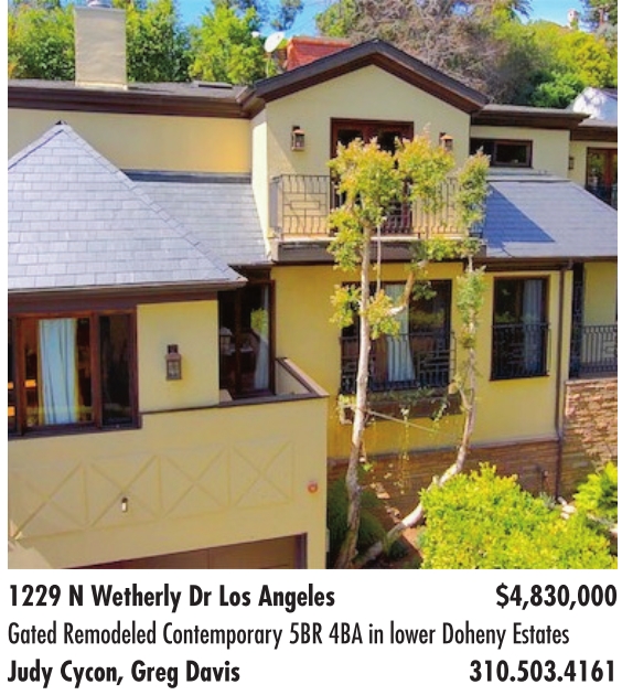 1229 N Wetherly Dr Los Angeles $4,830,000 Gated Remodeled Contemporary 5BR 4BA in lower Doheny Estates Judy Cycon, Greg Davis 310.503.4161