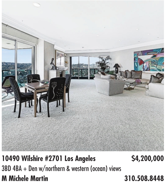 10490 Wilshire #2701 Los Angeles $4,200,000 3BD 4BA + Den w/northern & western (ocean) views M Michele Martin 310.508.8448