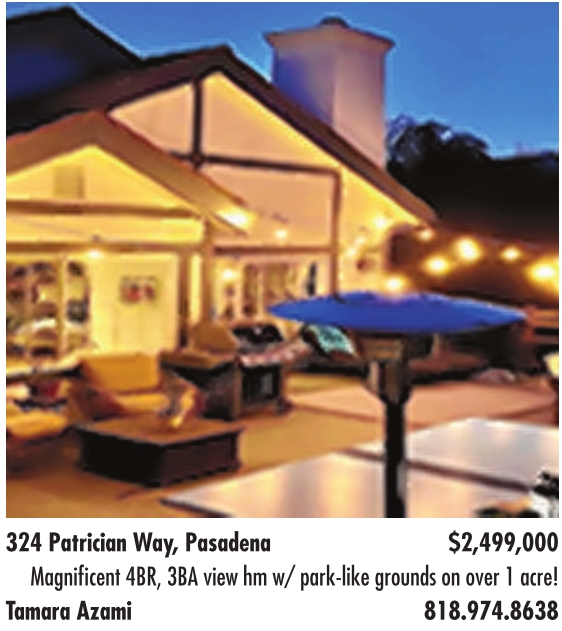324 Patrician Way, Pasadena $2,499,000 Magnificent 4BR, 3BA view hm w/ park-like grounds on over 1 acre!